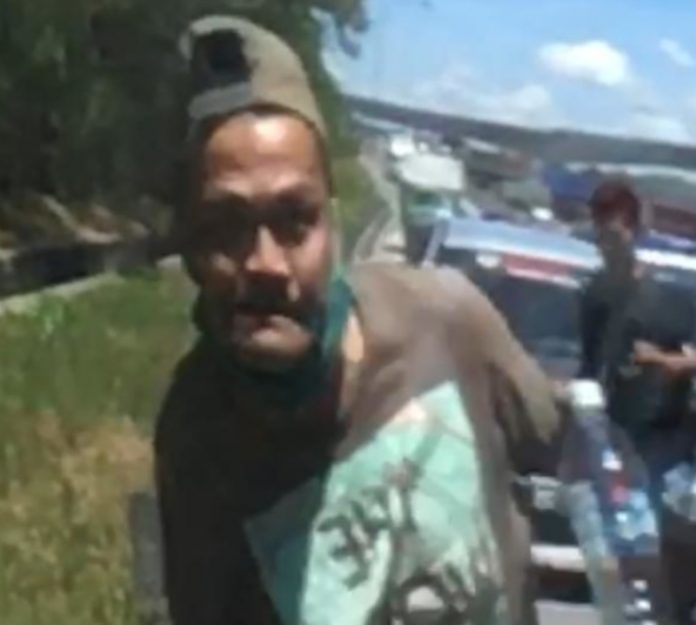 Earlier today, a one minute, 45-second video of the suspect ramming his car into other vehicles at a traffic light junction to evade police has gone viral on social media.