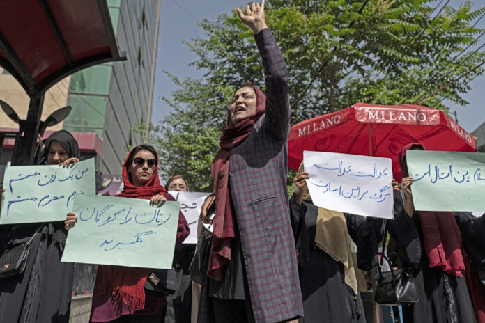 Yesterday, Taliban fighters dispersed a small women’s protest against the burqa dress code and even obstructed journalists from covering it. — AFP