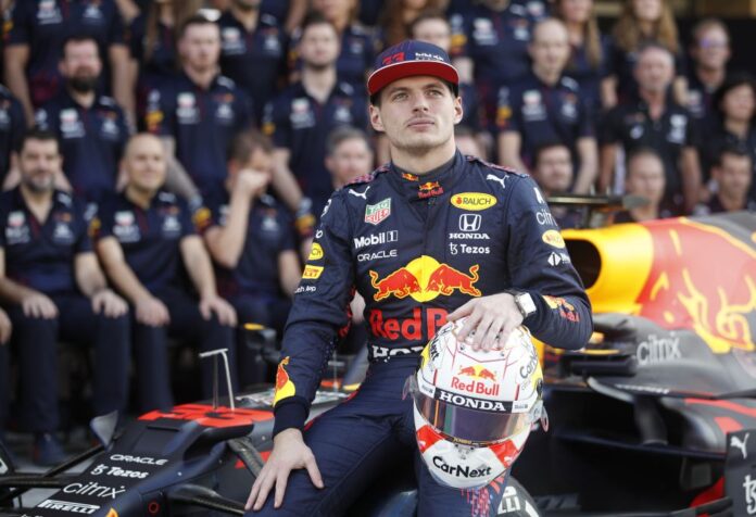 Red Bull’s Max Verstappen poses during a team photo ahead of the Abu Dhabi Grand Prix at the Yas Marina Circuit, Abu Dhabi December 9, 2021. — Reuters pic