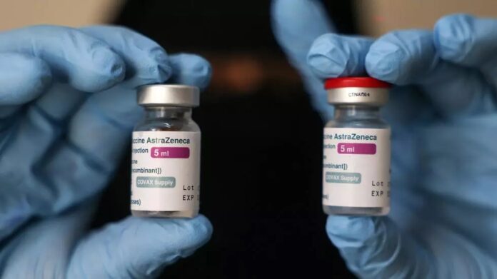 File shows a health worker holding up vials of the AstraZenaca vaccine. ― Borneo Post pic