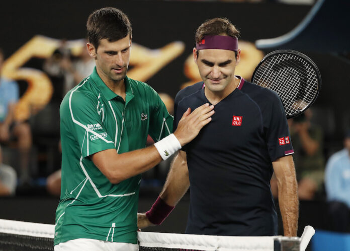 Serbia’s Novak Djokovic pats Switzerland’s Roger Federer after their semi-final at the Australian Open in Melbourne January 30, 2020. — Reuters pic