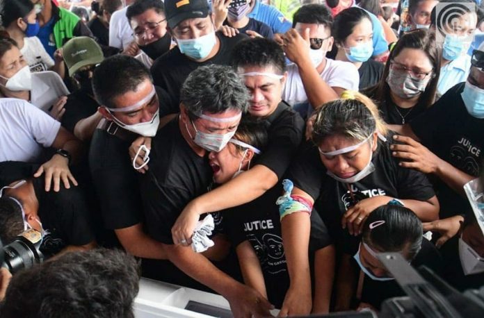 Family members of the slain Sonya and Frank Gregorio cry for justice during the duo’s funeral. (Twitter pic/adam_sonyy)