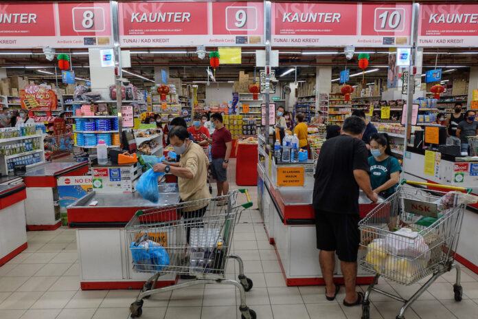 People wearing face masks shop for groceries at the NSK in Kuala Lumpur January 9, 2021. KPDNHEP said OPS HAD 2J would focus on supermarkets, shopping complexes, farmers’ markets, night markets and other premises. — Picture by Yusof Mat Isa