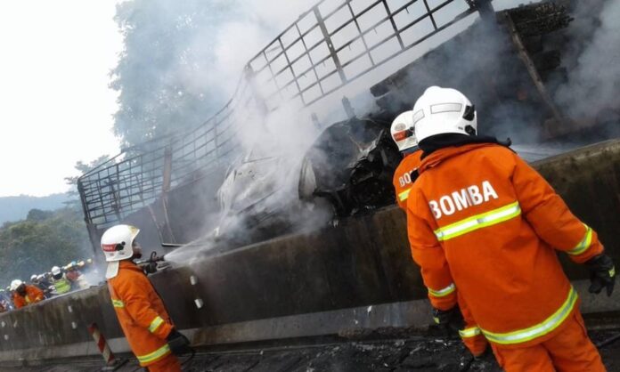 IPOH, May 12 — Five were burnt to death when the car they were travelling in caught fire after being involved in a collision with two trailers at KM246 of the North-South Expressway northbound near Kuala Kangsar early this morning.