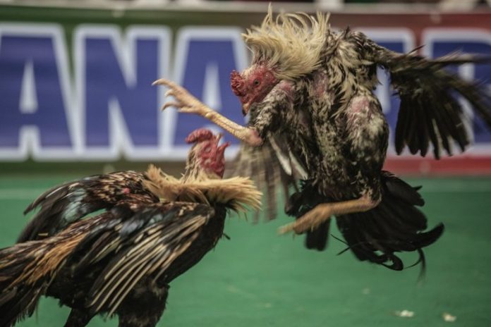 “In the raid the suspects failed to escape and police seized five fighting cocks, their cages, a digital alarm clock and two rolls of paper used to surround the cockpit.