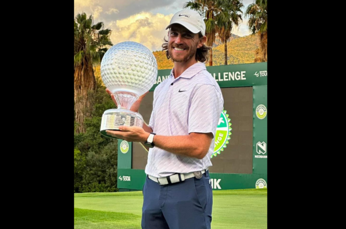Fleetwood poses with the trophy after winning the Nedbank Golf Challenge in Sun City. — Picture via Facebook