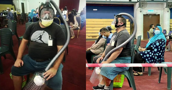 Photos of the foreigner wearing a snorkelling mask while getting vaccinated at the Langkawi Development Authority (LADA) Sport Complex have gone viral on Facebook