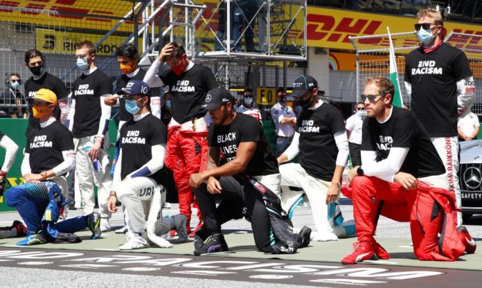 Britain’s Lewis Hamilton and other drivers have knelt ahead of every race for the past two seasons in a show of solidarity against racism.