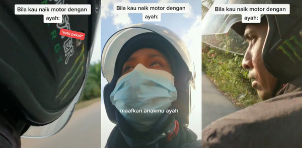 Dia dilihat menaiki motosikal bersama-sama dengan bapanya. Tapi apa yang cuba disampaikan oleh gadis itu adalah bapanya yang mengajak bersembang dengan dirinya.