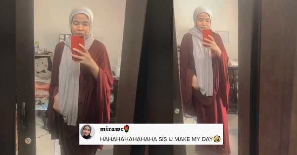 Namun, apa yang lebih menghiburkan adalah dia selepas itu membuka tudung yang dipakainya dan memberitahu pakaian ini boleh untuk membawa solat terus.
