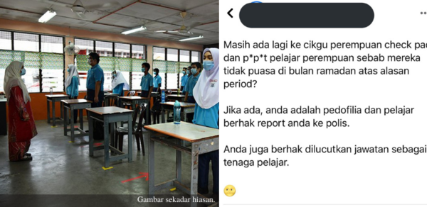 Terdapat pelajar yang sedang datang haid dan tidak berpuasa ketika itu, namun perkara itu tidak dipercayai oleh warden dan guru mereka. Oleh itu, warden dan guru bertindak untuk meraba sama ada mereka memakai tuala wanita atau tidak untuk membuktikan mereka datang haid.