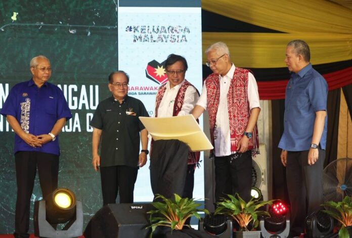 Datuk Seri Ismail Sabri Yaakob (second from right) officiates the Selangau section of the Sarawak Pan Borneo Highway November 14, 2022. — Bernama pic