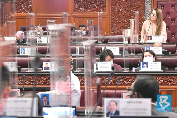 Ras Adiba Radzi addresses the Dewan Negara. — Bernama photo
