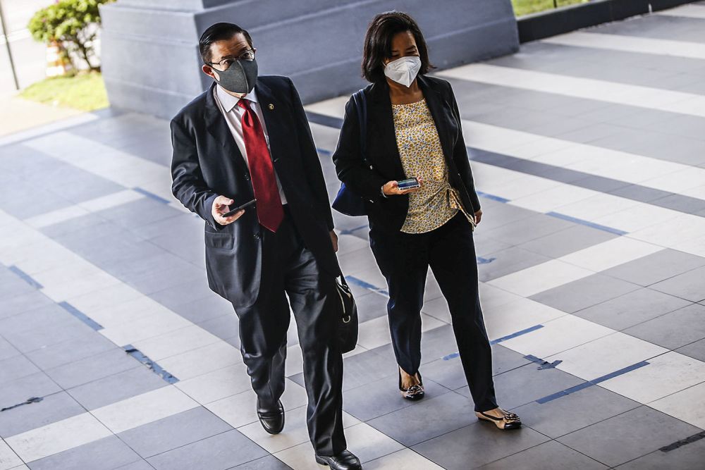 Former Penang chief minister Lim Guan Eng (left) and his wife Betty Chew Gek Cheng arrive at the Kuala Lumpur High Court September 23, 2021. — Picture by Hari Anggara