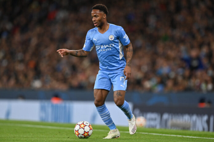 Manchester City midfielder Raheem Sterling looks to play a pass during the Uefa Champions League Group A football match between Manchester City and Paris Saint-Germain at the Etihad Stadium in Manchester, November 24, 2021. — AFP pic