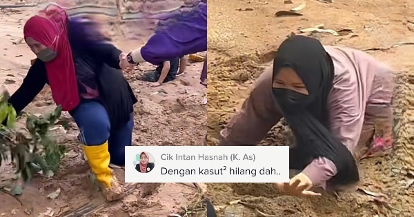 Menerusi video yang dimuat naik oleh @aifaazlan92, kelihatan dua orang wanita yang terperangkap dalam satu kejadian tanah jerlus.