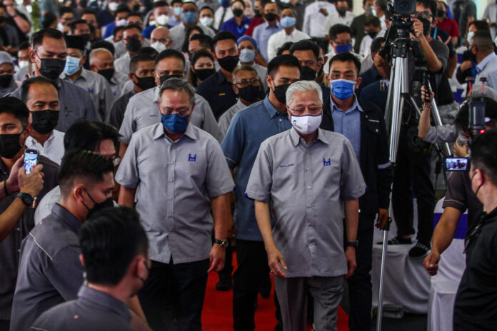 Prime Minister Datuk Seri Ismail Sabri Yaakob with caretaker Johor Mentri Besar Datuk Hasni Mohammad (left) during a visit to the Larkin Indah Residence in Johor Baru, March 4, 2022. – Picture by Hari Anggara
