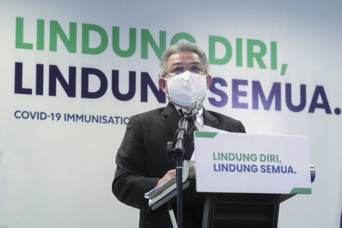 Health Minister Datuk Seri Dr Adham Baba during a press conference on Covid-19 developments at the Covid-19 Immunisation Task Force headquarters in Putrajaya, June 21, 2021. — Bernama pic