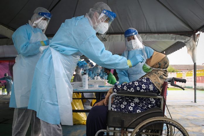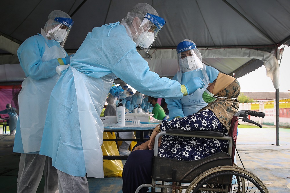 Health workers collect swab samples to test for Covid-19 at the Dewan Masyarakat Taman Meru 3 in Klang December 2, 2020. — Picture by Yusof Mat Isa