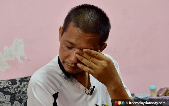 Mohd Suhaimi Marzuki wipes his tears away as he speaks of his wife.