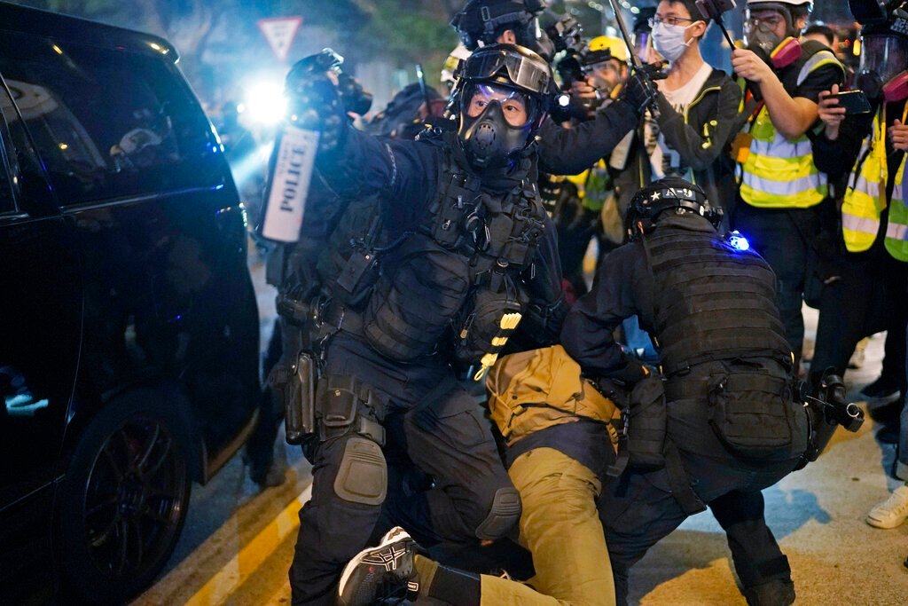 Hong Kong riot police detain a man during a rally on Christmas Eve last year. (AP pic)