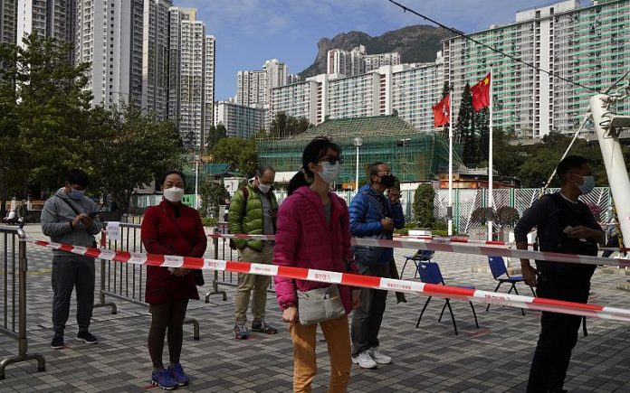 Residents queue at a temporary Covid-19 testing centre in Hong Kong last week. (AP pic)