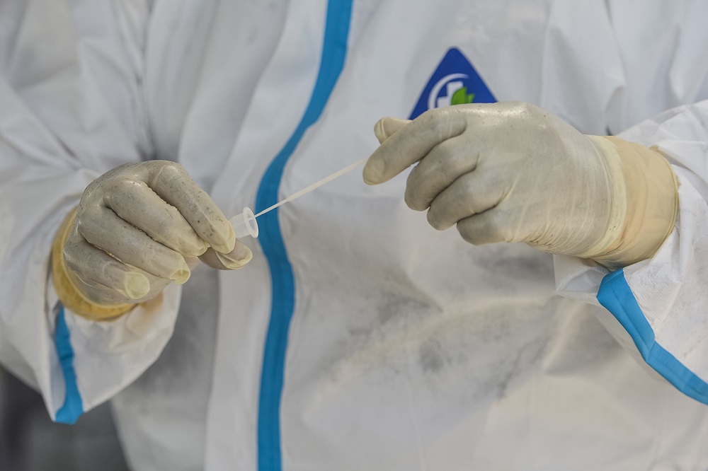Health workers test members of the public for Covid-19 at Dewan MBSA Seksyen 19 in Shah Alam February 17, 2021. — Picture by Miera Zulyana