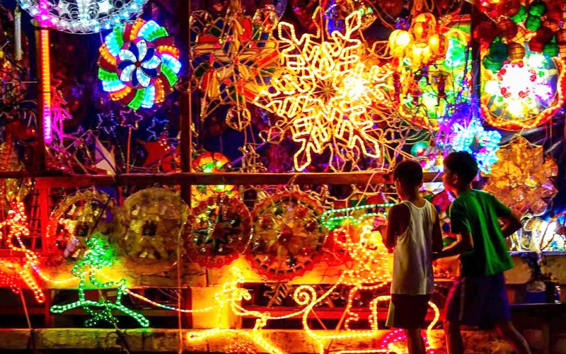 Apart from the usual Christmas tree, Filipinos also decorate their homes with lighted star lanterns, called “parol”.