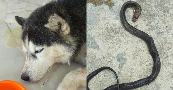 According to her, Dai Bao was gasping for air, its nose was bleeding, and its eyebrows were swollen. Yap said the husky was obviously bitten by the cobra.