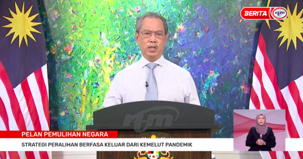 Perdana Menteri, Tan Sri Muhyiddin Yassin hari ini mengumumkan Pelan Pemulihan Negara yang merupakan satu strategi peralihan keluar secara berfasa dari kemelut pandemik Covid-19