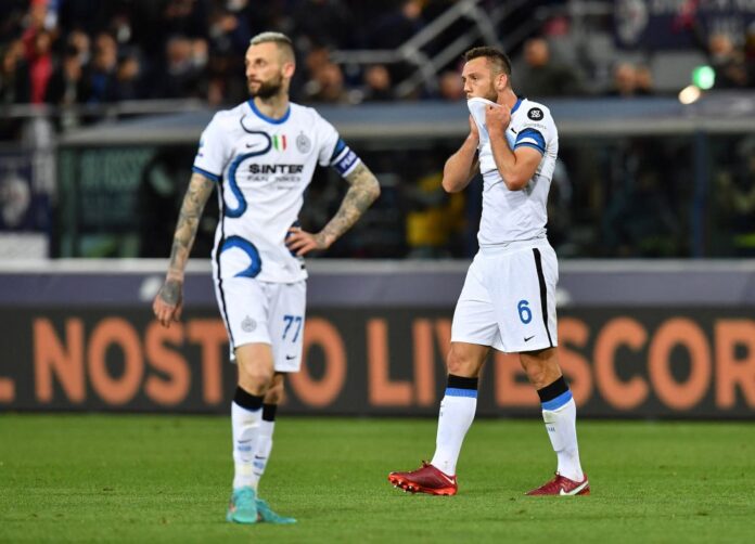 Inter Milan players look dejected after the match against Bologna at Stadio Renato Dall’Ara, Bolognal April 27, 2022. — Reuters pic