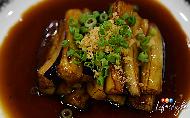 The stacks of tender brinjal resting in a pool of sweet, garlic sauce made of Taiwanese soy sauce, mirin and sake will have you gulping down spoonfuls in no time.
