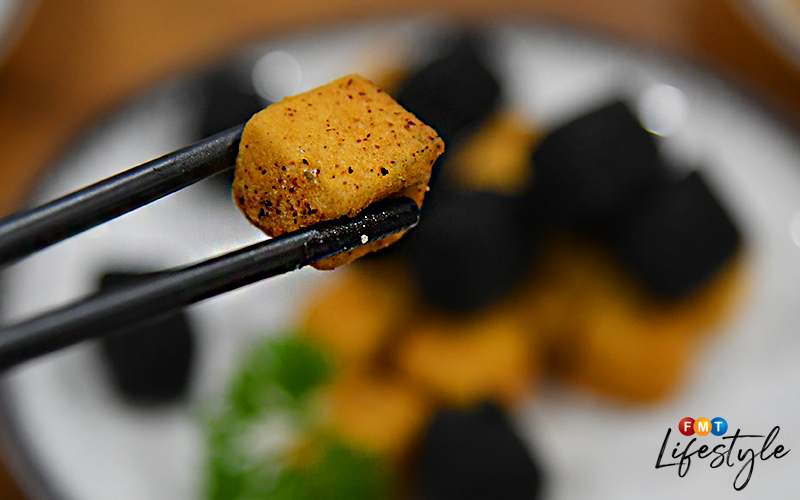 Tofu isn’t usually the star of the show, but this eye-catching appetiser, Black and Gold Fried Tofu in Garlic Salt, is definitely a highlight.
