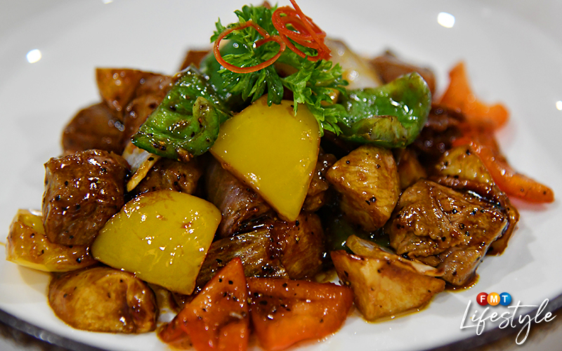 This Chinese stir fry is further elevated with rib eye cubes which are skillfully seared on the outside but remain succulent on the inside, and the cubed mushrooms and colourful capsicum complement this dish beautifully.