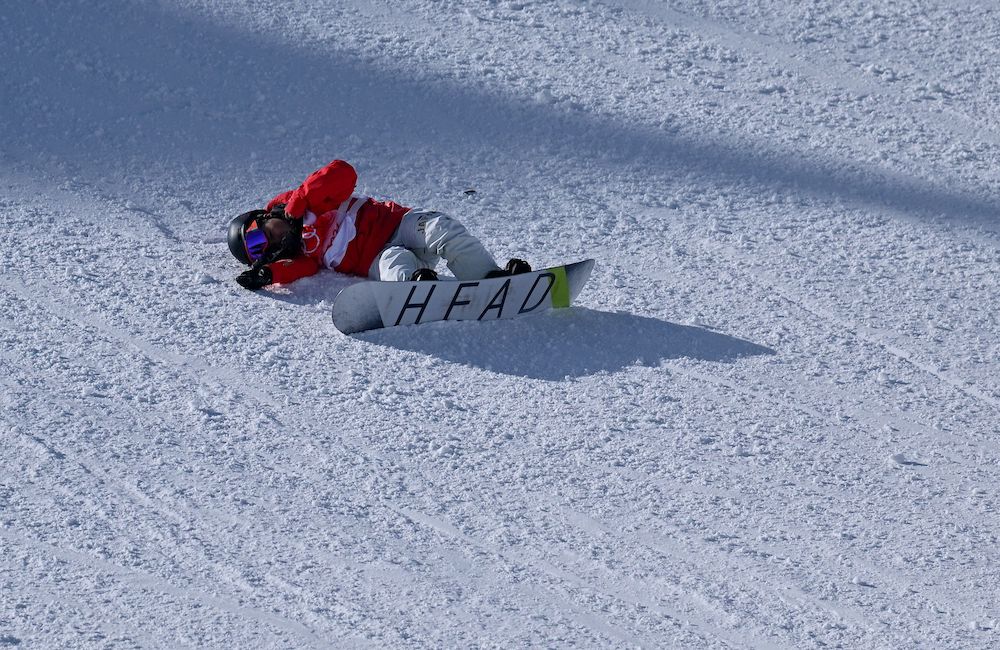 Rina Yoshika of Japan after falling during training at the Genting Snow Park, Zhangjiakou, China February 3, 2022. — Reuters pic