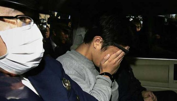 Takahiro Shiraishi covers his face with his hands as he is transported to a prosecutor’s office in Tokyo in 2017. (AFP pic)