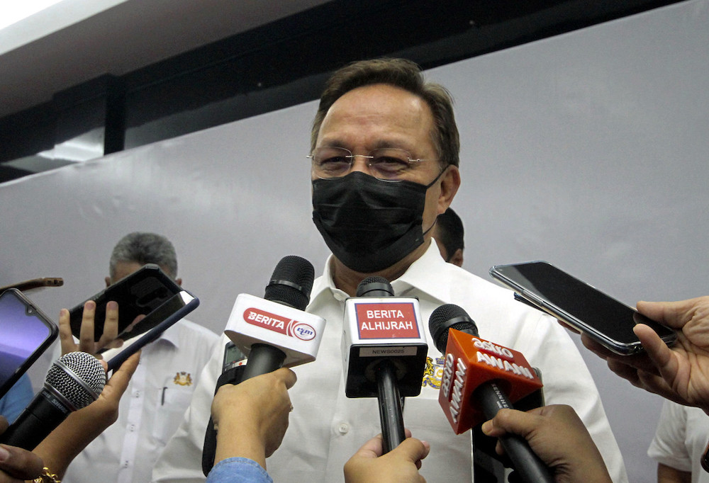 Johor Mentri Besar Johor Datuk Hasni Mohammad speaks to the media in Pontian July 31, 2021. — Bernama pic