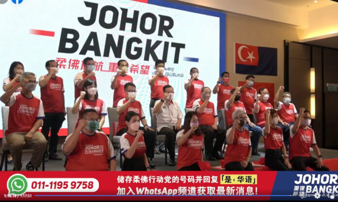 DAP at the announcement of candidates for the Johor state election in Johor Baru, February 24, 2022. — Screengrab from Facebook/DAP