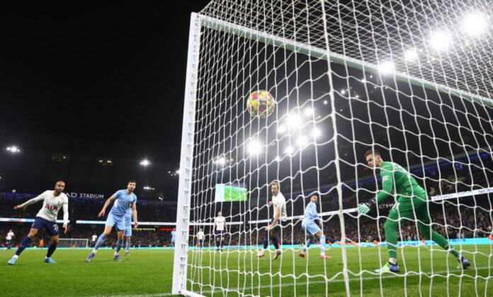 City looked favourites to claw out a dramatic late victory, but Kane’s header in the sixth minute of added time clinched a league double for Tottenham over City, having beaten them on the opening weekend of the season.