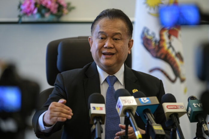 Domestic Trade and Consumer Affairs Minister Datuk Seri Alexander Nanta Linggi speaks to the media in Kuala Lumpur, March 23, 2022. — Bernama pic