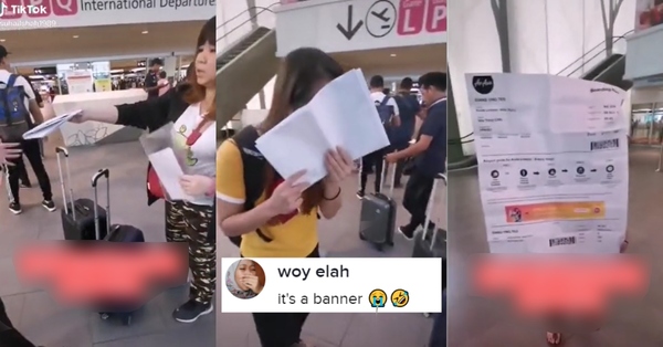 Namun, lain pula yang terjadi kepada seorang wanita ini apabila videonya tular di TikTok gara-gara dikenakan oleh rakannya yang memberi tiket flight menggunakan kertas yang bersaiz besar.