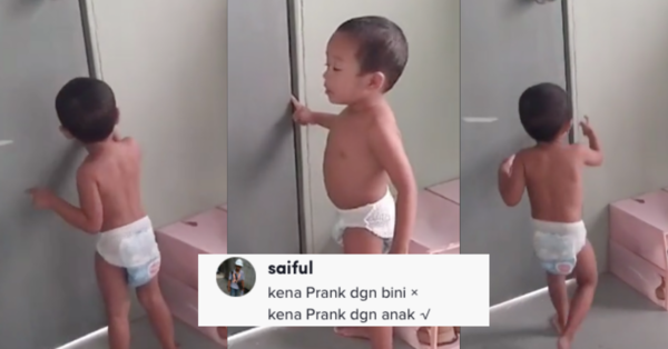 Apa yang lebih mencuri tumpuan adalah apabila budak lelaki itu sengaja prank ayahnya dengan meletakkan jari di celah pintu seolah-olah terkena sepit. Ayahnya kemudian menjenguk dan kantoi dirinya telah diprank.