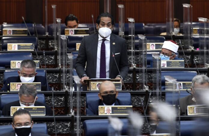 National Covid-19 Immunisation Programme Coordinating Minister Khairy Jamaluddin addresses members of Parliament during a special sitting on July 28, 2021. — Bernama pic