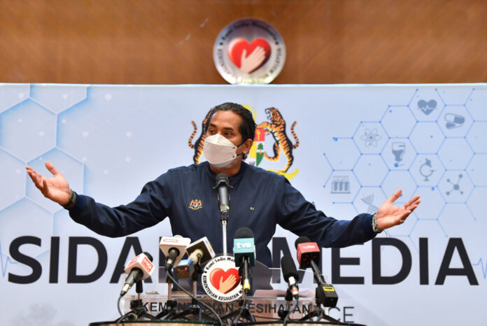 Health Minister Khairy Jamaluddin speaks at a press conference at the ministry in Putrajaya, December 28, 2021. — Bernama pic