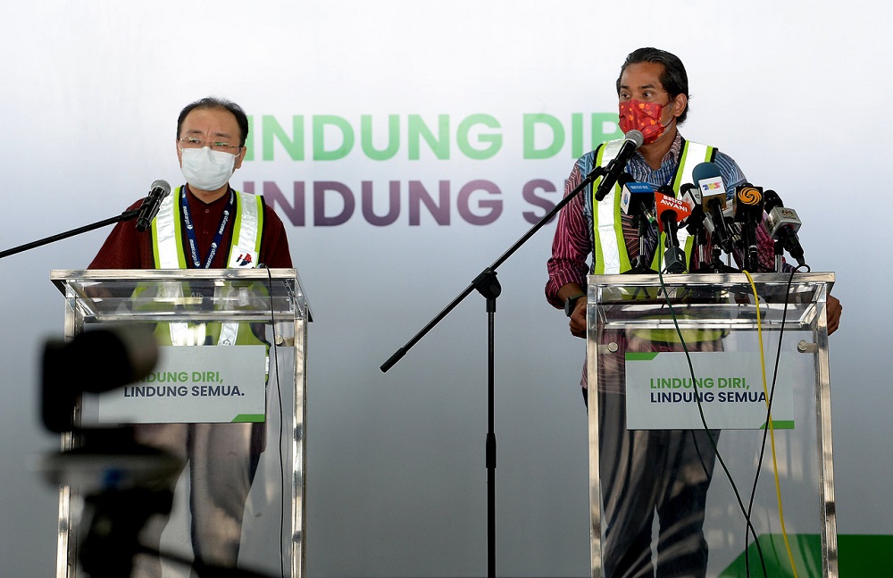 National Covid-19 Immunisation Programme Khairy Jamaluddin (right) speaks during a press conference in Sepang February 27, 2021. ― Bernama pic