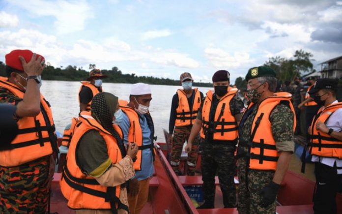 The Yang di-Pertuan Agong Sultan Abdullah Sultan Ahmad Shah and his son, the Tengku Mahkota Pahang joined the mission to find the victim at Kampung Kuala Kujan in Temerloh, Pahang today.