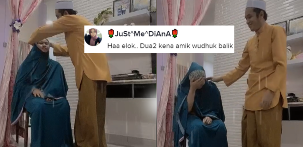 Baru nak sweet dengan isteri siap pakaikan telekung sampai lupa ada air wuduk