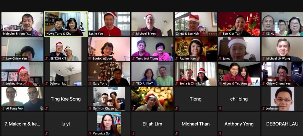 Dr Wong and Gan (top row, second left) meeting with church members over Zoom after Christmas online service yesterday.