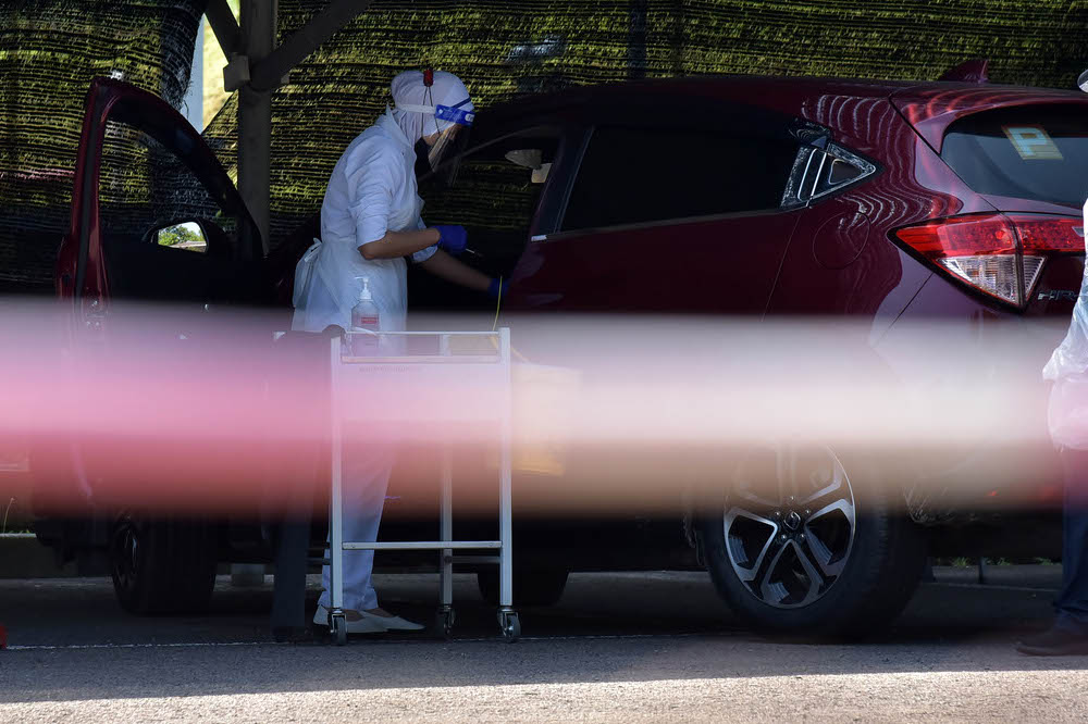 Health officers giving recipients the second dose of Pfizer-BioNTech type Covid-19 vaccine at Universiti Malaysia Sabah Labuan International Campus’ drive through vaccination centre, July 27, 2021. — Bernama pic