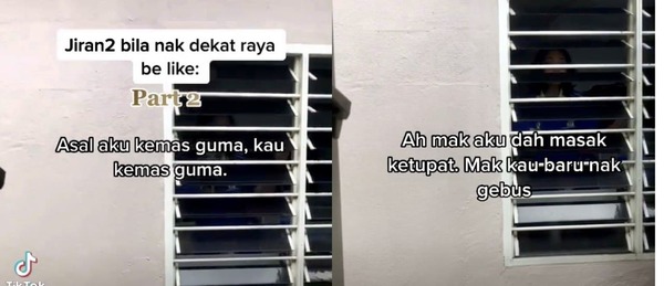 Di hujung video pula, mereka siap menyanyi duet lagu raya sambil mengelap tingkap dan membuatkan warganet adore dengan kehidupan mereka sebagai jiran yang bersaing secara sihat.